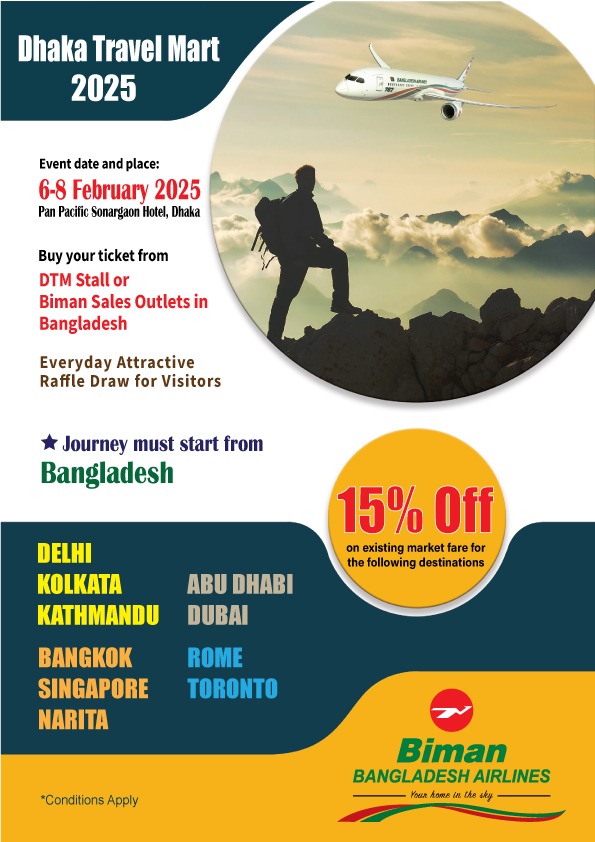 ঢাকা ট্রাভেল মার্ট উপলক্ষে বিভিন্ন রুটে ১৫% মূল্যছাড়
