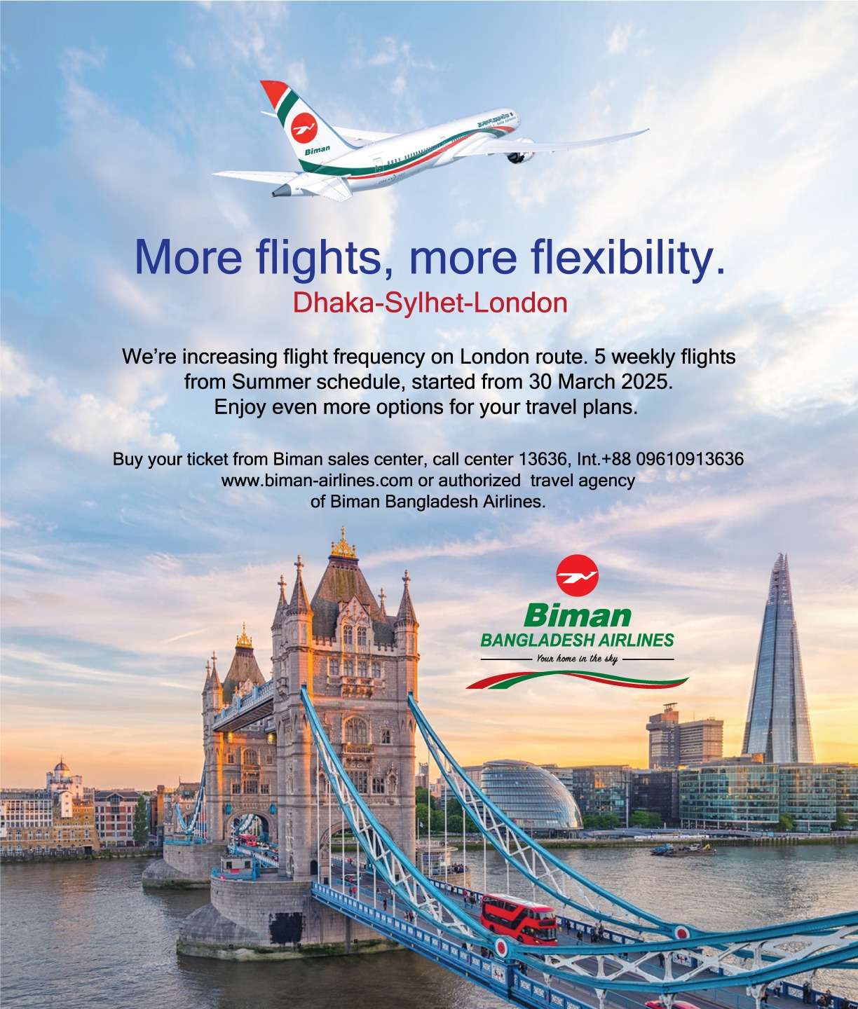 Extra flight on Dhaka-Sylhet-London route