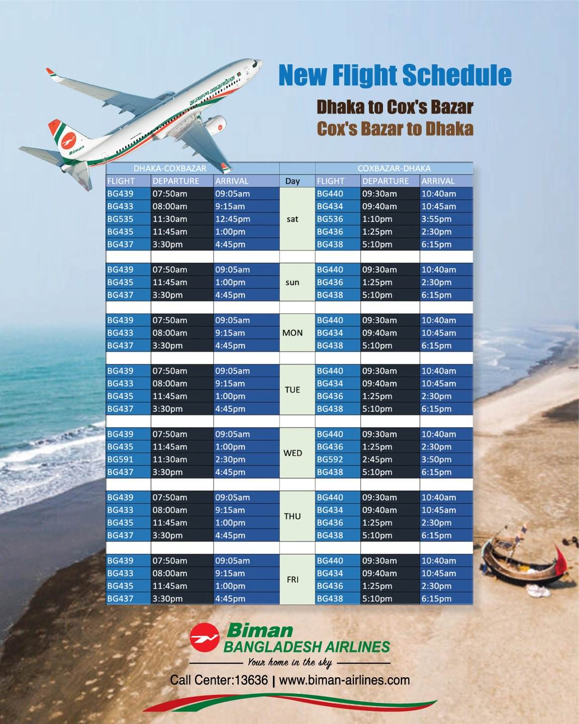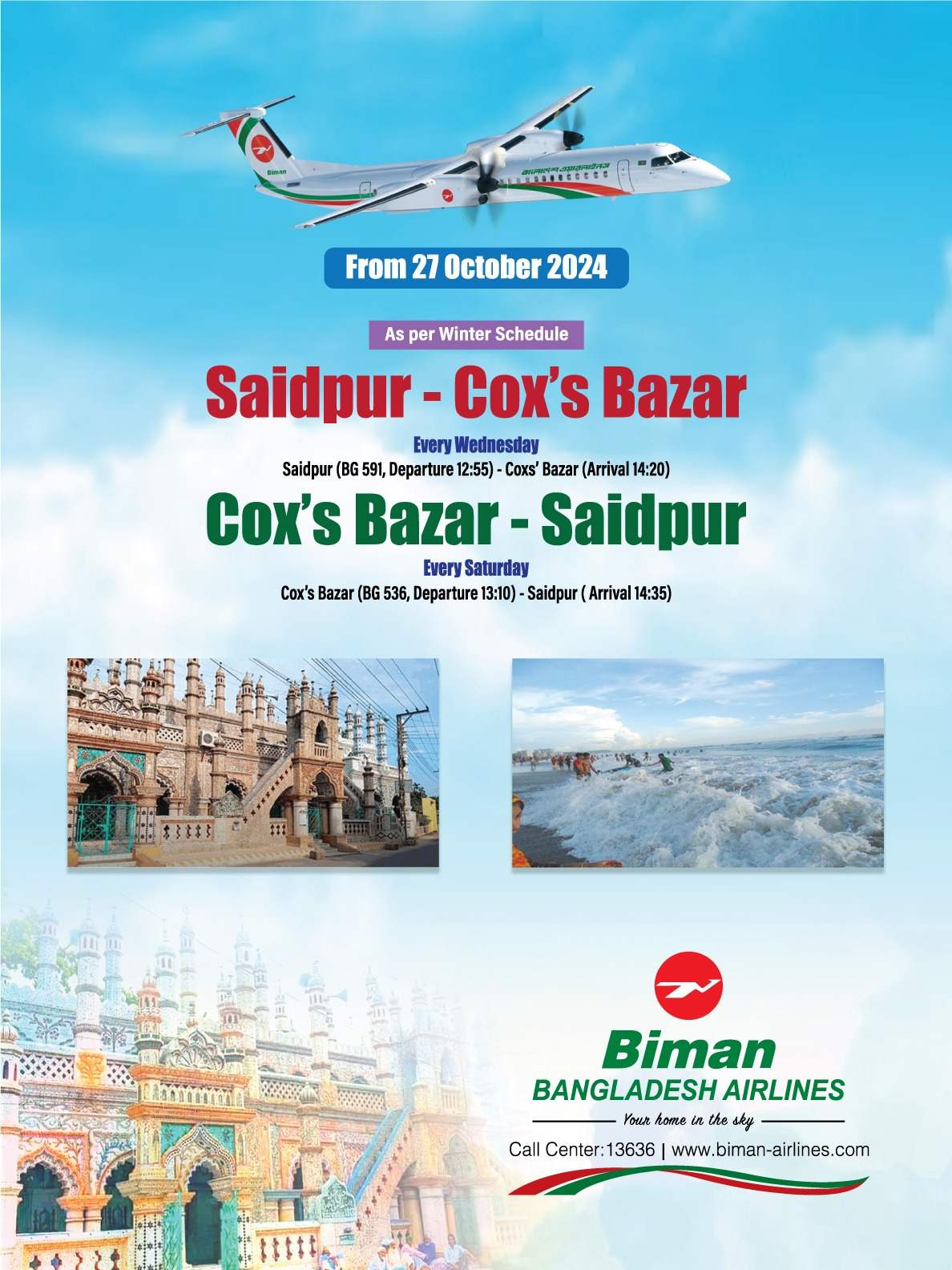 সৈয়দপুর-কক্সবাজার-সৈয়দপুর রুটের শীতকালীন ফ্লাইট সূচি