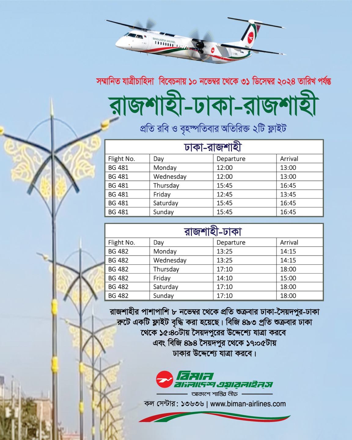 রাজশাহী ও সৈয়দপুর রুটে ফ্লাইট বাড়িয়েছে বিমান